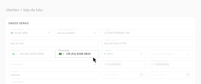 novo campo de WhatsApp no cadastro de clientesadicionamos o campo WhatsApp ao cadastro de clientes, facilitando o acesso a essa informação diretamente na teceo.