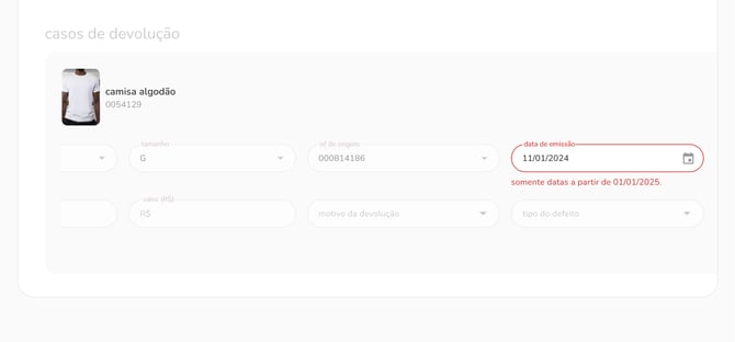 validade da data de emissão em casos de devoluçãoadicionamos também na estrutura de casos de atendimento a opção de definir um prazo limite de devolução considerando a data de emissão da nota fiscal de origem, garantindo que apenas produtos dentro desse período sigam no fluxo de devolução.caso essa funcionalidade faça sentido para a sua marca, basta entrar em contato com o time de CS para configurá-la.
