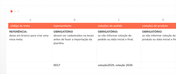 importação de metas via planilhaagora é possível criar e atualizar metas para representantes através da importação de planilhas, tornando o processo muito mais ágil ao permitir ajustes em massa, sem precisar editar cada uma individualmente.